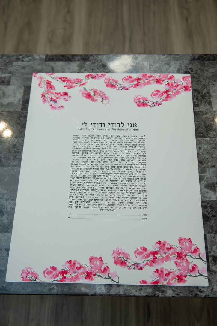Our ketubah – the legal document written in Aramaic that states that Harvey pledges to be a good husband, and Janaki promises to be a good wife (basically).
